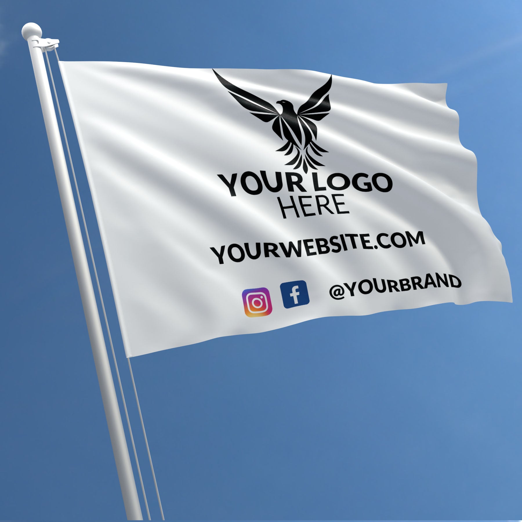 Our custom flags are printed using state-of-the-art equipment, allowing for vibrant colors, sharp details, and accurate color reproduction. Whether you want to showcase your logo, display a captivating design, or promote an event, our high-resolution printing ensures that your flag will be visually striking and attention-grabbing.